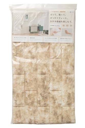 APMジャパンの高機能3D壁紙FlexiFitEcoは、立体的なレンガ調デザインで、ストーンベージュのクッションシートです。サイズは71cm×77cmで、約0.5㎡分の壁面をカバー。