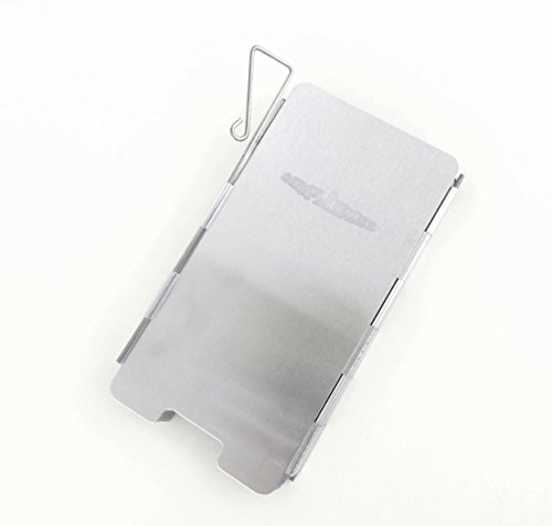 simPLEISUREのウインドシールドは、アウトドアでの風防に最適。折りたたみ式で軽量なアルミ製。コンパクト設計で高さ135mm、BBQやランタンにも対応。収納ポーチ付き。