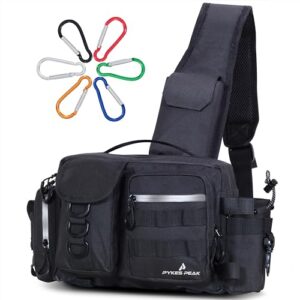 PYKES PEAK (パイクスピーク) 釣り バッグ フィッシングバッグ タックルバッグ ランガンバッグ 2サイズ 5色 防水ジッパー 大容量 カラビナ6個 フィッシングショルダーバッグ Mサイズ (ブラック)