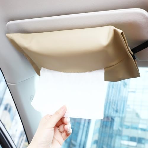 QueensCityの車用ティッシュケースは、サンバイザーに吊り下げ可能な薄型ティッシュカバーです。便利な収納機能を備えたカー用品で、ベージュカラーがシンプルでスタイリッシュです。