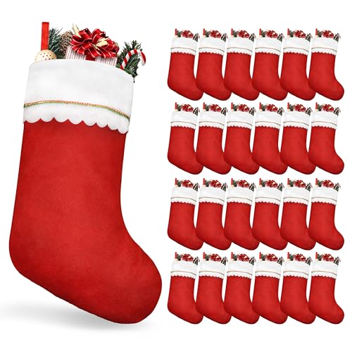 クリスマスソックス45cm無地ストッキング、24パック(26x40cm)。暖炉に吊るしてホリデーを彩る飾りに最適なデコレーションアイテムです。