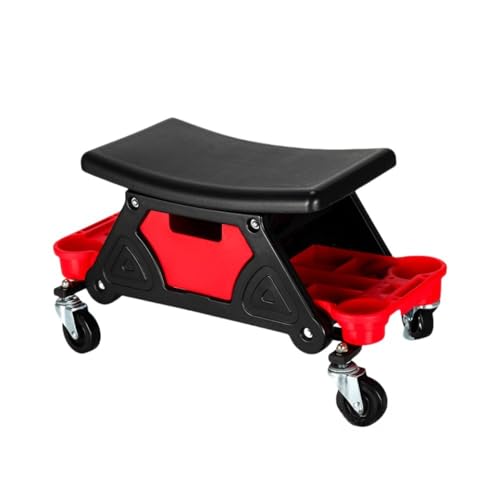 Sariny作業椅子は、360°回転キャスター、ブレーキ付きで安定性抜群。トレー付きで工具や洗車用品の収納が可能。自動車整備や修理作業に最適な快適なワーキングチェアです。