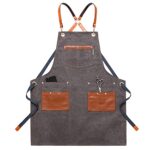 キャンバス素材の作業用エプロン。グレー色のXLサイズで、大工や作業工具、溶接時に最適。ポケット付きで便利です。耐久性が高く、作業時の保護と収納力を兼ね備えています。