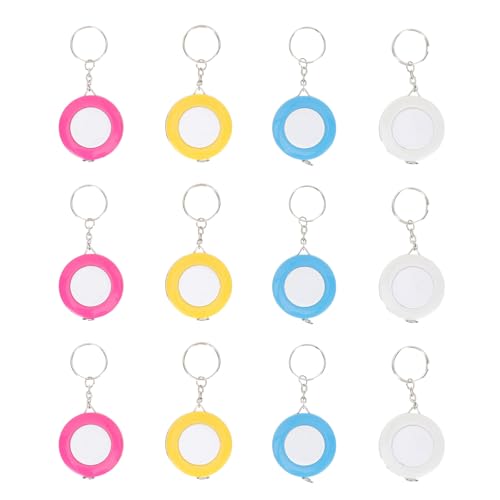CALLARON ABS素材製の小型巻尺キーホルダー12個セット。ボディメジャーテープとして使え、体型測定や多目的測定に最適。携帯に便利なランダムカラーで、楽しさもプラス。