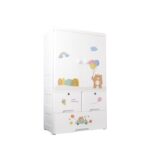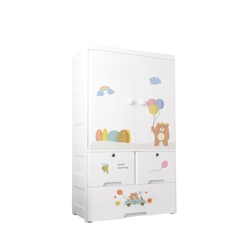 Simcat キッズクローゼットは、キャスター付きで引き出し2個、ハンガーラック1個を備えた子供用の大容量衣類収納です。折り畳み式、扉付き、かわいいロマンチッククマデザインで、防水防塵、耐荷重にも優れています。