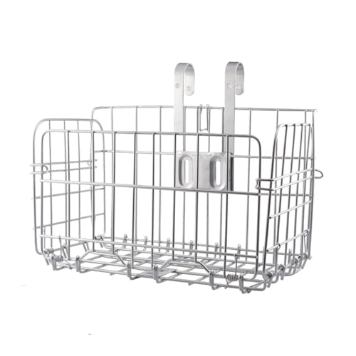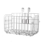自転車用折り畳みカゴ。前後に取り付け可能で大容量、耐荷重20㎏。クロスバイク、マウンテンバイク、ロードバイクに対応。簡単脱着、丈夫な設計。カラーはシルバー。