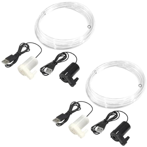 水槽用小型USBポンプ、静音設計で防水。コンパクトで持ち運び簡単。外形約43mm×23mm、排水口約23mm、外径6mm、口径4mmの給水管2m。ポンプ白黒各2個、給水管2個のセット、計6個入り。