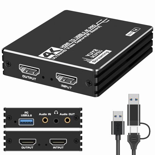 4K HDMIパススルー搭載のキャプチャーボード。1080P 60Hz、USB 3.0で低遅延の高速転送。Switch、PS5、Xbox対応、Mac/Windows/Linux/iOSにも適用。