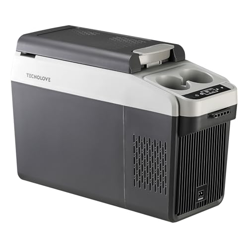 Tecnoloveの13Lポータブル冷蔵庫は、-20℃から10℃の温度設定が可能で、急速冷凍を実現。DC12V/24VとAC100V対応で、車載・家庭両用。静音設計で、省エネ、軽量、大容量。災害時にも便利な低電圧保護機能付き。