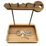 木製の玄関用キーホルダースタンドです。素朴なデザインで卓上に置け、収納トレイ付き。家庭用のジュエリースタンドやオーガナイザーとしても活用できます。