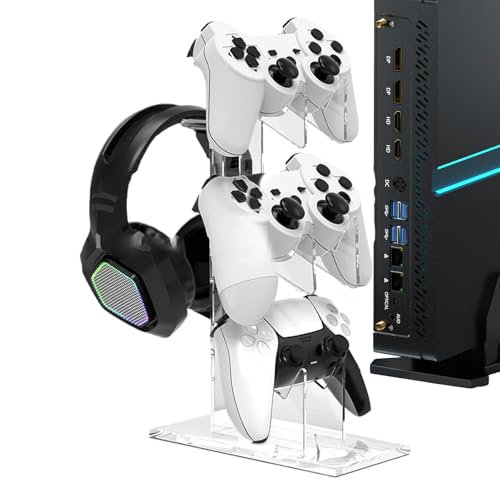 ヘッドホンスタンド兼ゲームコンソールスタンド。3段の縦型ラックで、デスクやオフィスに最適。収納力抜群で整理整頓をサポートします。
