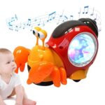 カタツムリのグリーンおもちゃは、ミラーボールの光と音楽が付いており、赤ちゃんや幼児に最適。這う動きで楽しく、夜のおもちゃにもおすすめ!