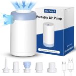 USB充電式の電動ポンプで、コードレスで手のひらサイズ。布団圧縮機専用の吸引機能を持ち、圧力4000Paでコンパクトで軽量。掃除機不要で簡単に使用可能。