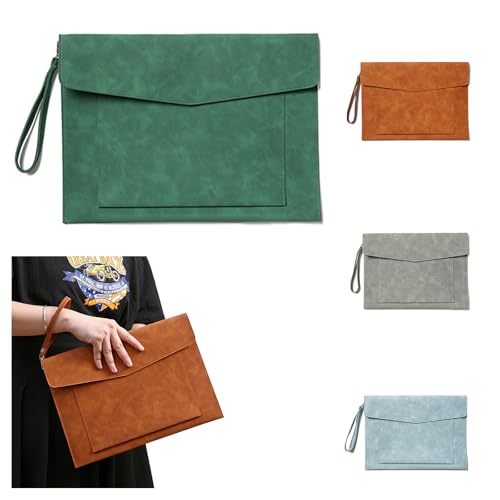 A4サイズのPUレザー製書類フォルダー。二重層・マグネット留めで大容量、柔らかい防水素材。持ち運び便利で、会議やビジネスに最適なタブレット・ノート収納ケース(グリーン)。