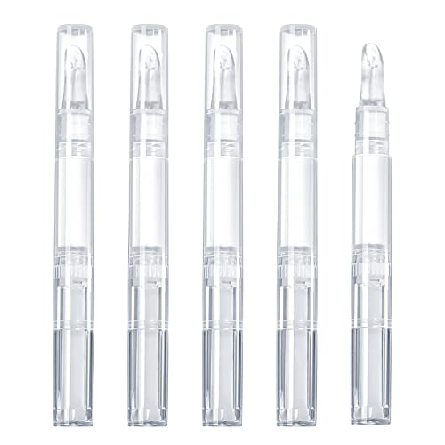 ツイストペン 5本入り 5mlの透明詰め替えメイク容器です。ねじれブラシと回転式のデザインで、化粧品やネイルオイル、香水、リップグロスの収納に最適。シリコンブラシヘッド付きで、持ち運びにも便利な旅行小物。