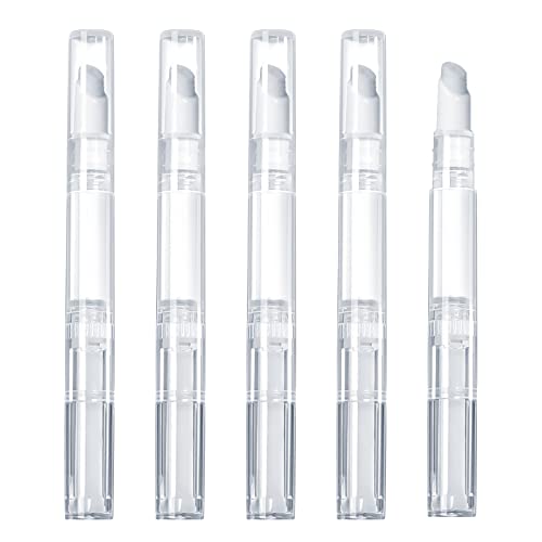 ツイストペン5本入り、各5ml容量の回転式透明メイク容器。詰め替え用として、化粧品、ネイルオイル、香水、リップグロスに最適。ブラシヘッド付きで、旅行にも便利な小分けボトルです。