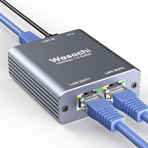 Wasachi LAN分配器は、1対2分岐が可能なスイッチングハブで、最大1000Mbpsの高速通信を実現。RJ45に対応し、Cat5/Cat5e/Cat6/Cat7/Cat8に適合。PS5/PS4などのゲーム機にも使用可能です。