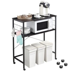 Somdot ゴミ箱上ラック レンジ上ラック 2段 幅80cm 炊飯器 キッチン多機能収納棚 幅80×奥行40×高さ93cm キッチンラック 食器 キャスター付き フック付き レンジ台 ゴミ箱上収納 スチール スリム おしゃれ ブラック