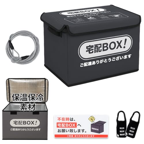 アップグレードモデルの55L置き配ボックス。折りたたみ式、防水設計で屋外使用可。マグネット付き、盗難防止のダイヤル式ロック2点、ワイヤー付き。個人宅やアパートに最適な大容量宅配BOX。