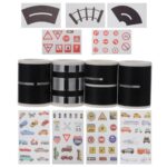 Zerodekoの交通用粘着マスキングテープ13枚セットは、DIYでカーブ道路や交通標識を作成できるアイテムです。壁や家具に貼りやすい和紙テープで、創造力を育むアートに最適です。