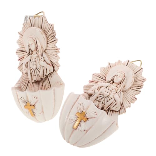 HOMOCONO 聖水フォントは壁装飾に最適。樹脂製でカトリックの信仰を祝福し、リビングルームにぴったりの2個セット。サイズは6.5x4x12cm。