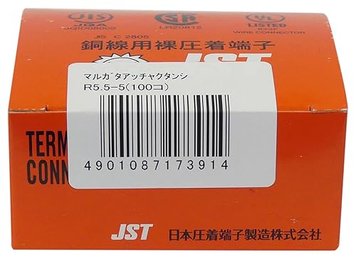 エルパ(ELPA)の丸型圧着端子R5.5-5は、業務用の高品質な接続端子で、100個入り。耐久性に優れ、電気配線の接続に最適です。サイズは5.5mm、様々な用途に対応します。