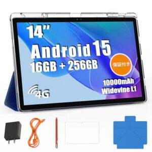 【Android 15 タブレット 14インチ】T616 8コアCPU、16GB+256GB+2TB拡張、4G LTE、1920×1200 IPS、10000mAh+18W PD急速充電、アンドロイド タブレット 大画面 Wi-Fi、Widevine L1/GMS認証、分割画面/FM/GPS、重力・光センサー、専用ケース & スタイラス
