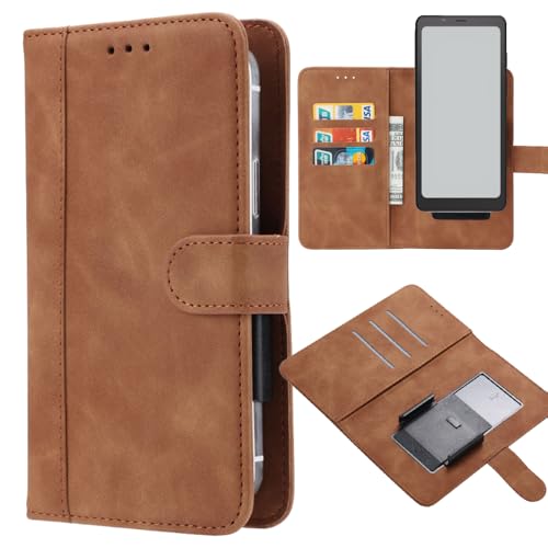 Ranyi BOOX Palma2 Pro/Palma 2用ケース。カードホルダー付きのレザーウォレット。可動クリップと磁気フリップ機能で便利。ブラウン色。電子書籍リーダー用。