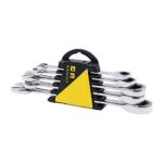 コンビネーションラチェットレンチセット5本組。サイズは8mm、10mm、12mm、13mm、15mmで、ラチェット機能付き。ホルダー付で持ち運びや収納も便利。薄型設計で作業がしやすい。