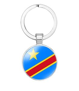 vmcoatdu コンゴ 国旗 キーホルダー キーリング ギフト 男性 女性 キーチェーン ステンレススチール 象嵌 ガラス素材, 画像, One Size