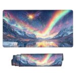 大型1000 x 500 x 3mmのゲーミングマウスパッド。防水、滑り止めゴム底、耐久性に優れた超高密度繊維。洗える表面で快適操作性を実現。オーロラ風景デザインが魅力の男性用デスクトップアクセサリー。