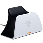 RazerのPS5用急速充電スタンドは、DualSenseコントローラーを3時間未満で完全充電可能。過充電防止機能搭載、USB電源供給の曲線形クレードルデザインで使いやすいです。