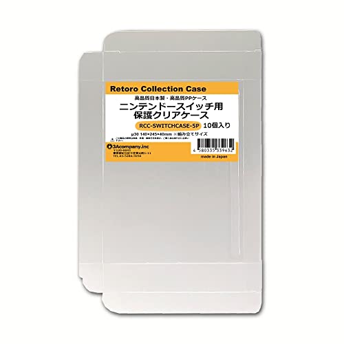 3Aカンパニーのニンテンドースイッチ用保護クリアケースは、10枚入りで、日本製のレトロコレクションケースシリーズ。モデル番号はRCC-SWITCHCASE-5P-2SETで、優れた耐久性と保護機能を提供します。