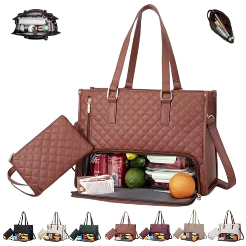 2 in 1 トートバッグ ランチバッグ コンボ レディース 仕事用ノートパソコンバッグ オフィスバッグ ランチコンパートメント付き 究極の2イン1トートバッグ(ブラウン)の高価買取ITEM