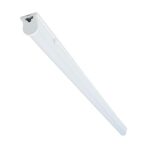 長さ117cmのスイッチ付一体型LED蛍光灯。昼光色、2180ルーメン、消費電力18W、ノンフリッカー設計。配線工事不要でAC電源コード2m、連結コード25cm付属。