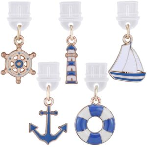 SUNNYCLUE 5スタイル ブルーダストプラグチャーム かわいい充電ポートチャーム エナメルメタルボート セーラー オーシャン 海 夏 互換ポートペンダント 電話 イヤホン 携帯電話 電子書籍リーダー プロテクター DIY 女性 大人