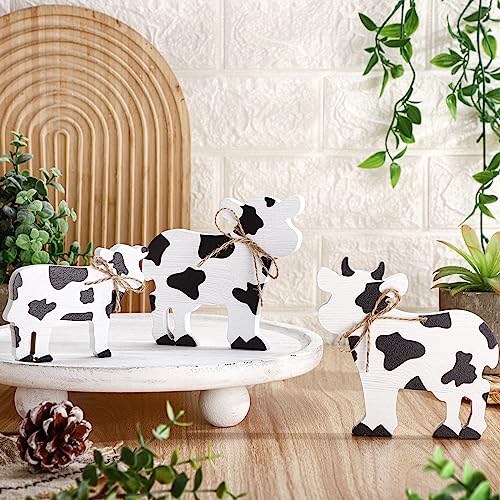 Redbakerの3ピース木製牛装飾は、ファームハウススタイルのティアードトレイに最適な素朴なデザイン。テーブルやオフィスのセンターピースとしてぴったり。