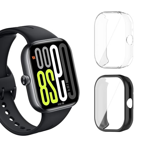 [Ceiband] Xiaomi Redmi Watch 5 対応 ケース 一体型 シャオミ mi redmi watch 5 用 保護ケース カバー TPUフィルム 全面保護 装着簡単 高透過率 ソフト 指紋防止 変色防止 防水防塵 耐衝撃 保護フィルム フェイスカバーセット (ブラック+クリア)