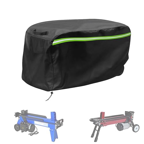 電動小型薪割り機用保護カバー。サイズは長100CM x 幅35CM x 高50CM。5-7トン対応。420D防水オックスフォード布製で夜間反射ストリップ付き。収納バッグ付きで安全を考慮。