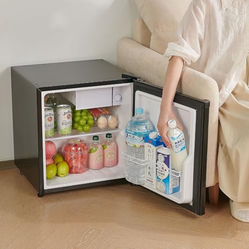 ONE STEPの50L小型冷蔵庫は、両開きデザインと製氷室付き。温度調節機能で一人暮らしやオフィスに最適なコンパクトモデル。ドアポケット付きで収納力も抜群。カラーはブラック。