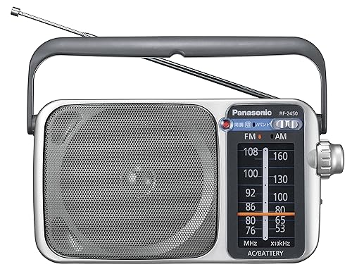 パナソニック FM/AM 2バンドレシーバー RF-2450-Sは、FM/AMラジオ受信が可能で、シルバーのスタイリッシュなデザインです。軽量で持ち運びに便利、クリアな音質を提供します。バッテリー駆動とAC電源の両方に対応。