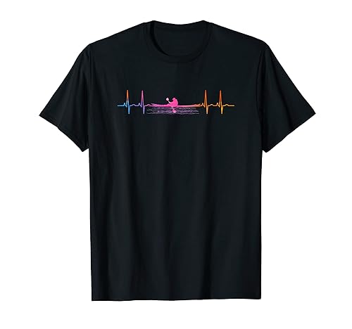 ハートビート・心拍数デザインのカヌー・カヤックTシャツ。アクティブなスタイルとマリンスポーツの楽しさを表現!快適な着心地とユニークなビジュアルで、アウトドア好きに最適。