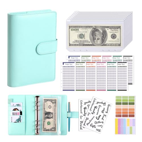 RINHAPI お金管理ポーチ A6サイズ 家計簿セット 袋分け 貯金ノート 現金管理 ファスナーポケット8枚付き 高価買取中