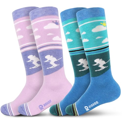 キッズ用メリノウールスキー靴下2足組。暖かく、通気性に優れ、快適なフィット感を実現。滑り止め付きで安全性も考慮。冬のアクティビティに最適!