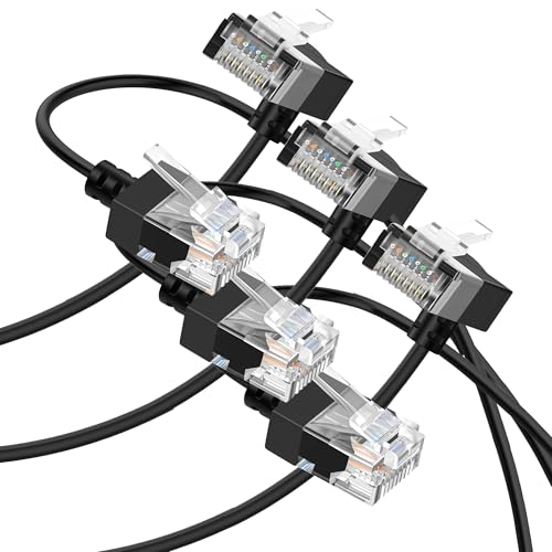Thzzhnno Cat6A イーサネットケーブル 90度下向き 30フィート 3本パック フレキシブルスリム&超薄型Cat6 Rj45イーサネットパッチLANコード 最大高速10Gbps 550MHz PC/プリンター/モデム用 (ブラック)の高価買取