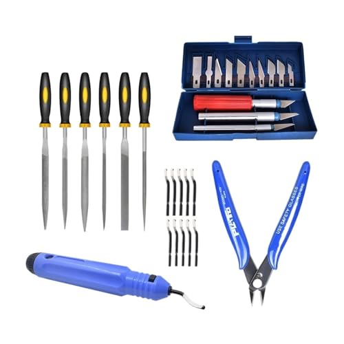 バリ取りツールキットは、彫刻刃とナイフが含まれ、DIYや3Dプリンターパーツのモデルファイルカットに最適です。材料除去に役立つスクレーパー付きで、精密作業に最適です。