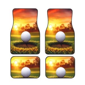 車用フットマット4点セット、ネオプレン製自動車フロアマットカーペット、フロントリア自動車フロアマットセット/スポーツゴルフボールサンセットツリー/SUV、セダン、トラックにユニバーサルフィット