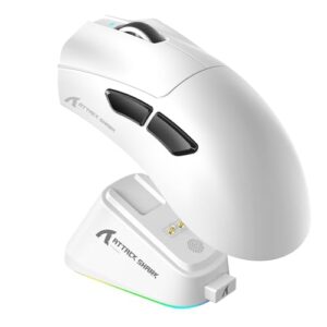 ATTACK SHARK V3PRO ゲーミングマウス 3モードワイヤレス/ 有線/2.4G接続 65g軽量マウス PAW3311センサー BK52820 MCU 右利き用カーブド RGBマグネット充電スタンド エルゴノミクス設計DPI25000 50精度調整 1億回耐久スイッチ 大型パームサポート40G 1000Hz ポーリングレート 500mAh(ホワイト)