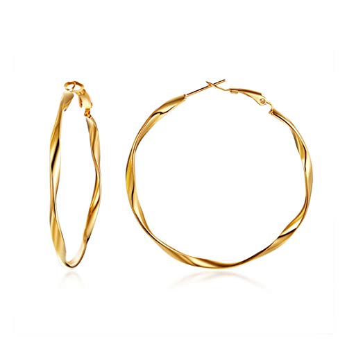 Rockyuブランドの人気18金ステンレス製フープピアス。大きめでシンプルなおしゃれデザインは、バレンタインデーのプレゼントにも最適。女性に人気のアクセサリーです。