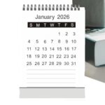 2026年1月から2027年6月までのミニ卓上カレンダー。学校やオフィス向けのコンパクトなファミリーオーガナイザー。明確なレイアウトで簡単にフリップでき、屋内アクセサリーとしても最適。Sサイズ、ホワイト。